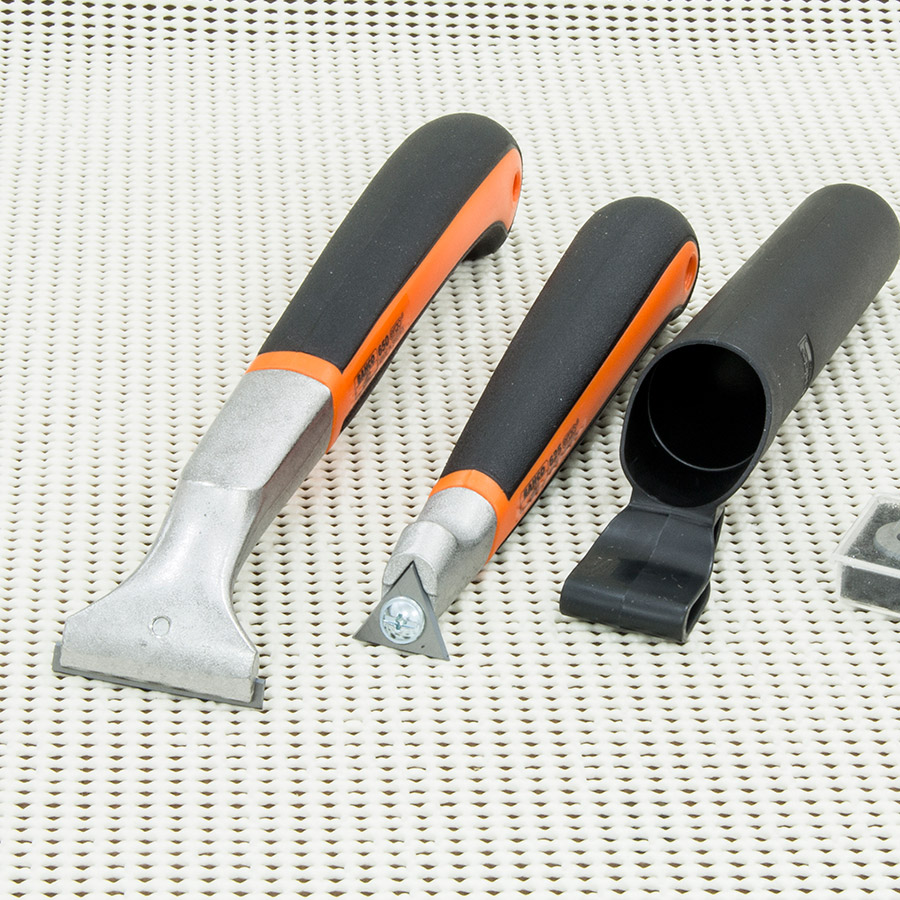 Um kit com 2 raspadores da Linha Ergo da Bahco para diversos trabalhos de raspagem. Pode ser utilizado para raspar diversos materiais como madeira, ferro e metais diversos. Raspador com cabo e lâmina descartável Bahco, importado da Suécia.